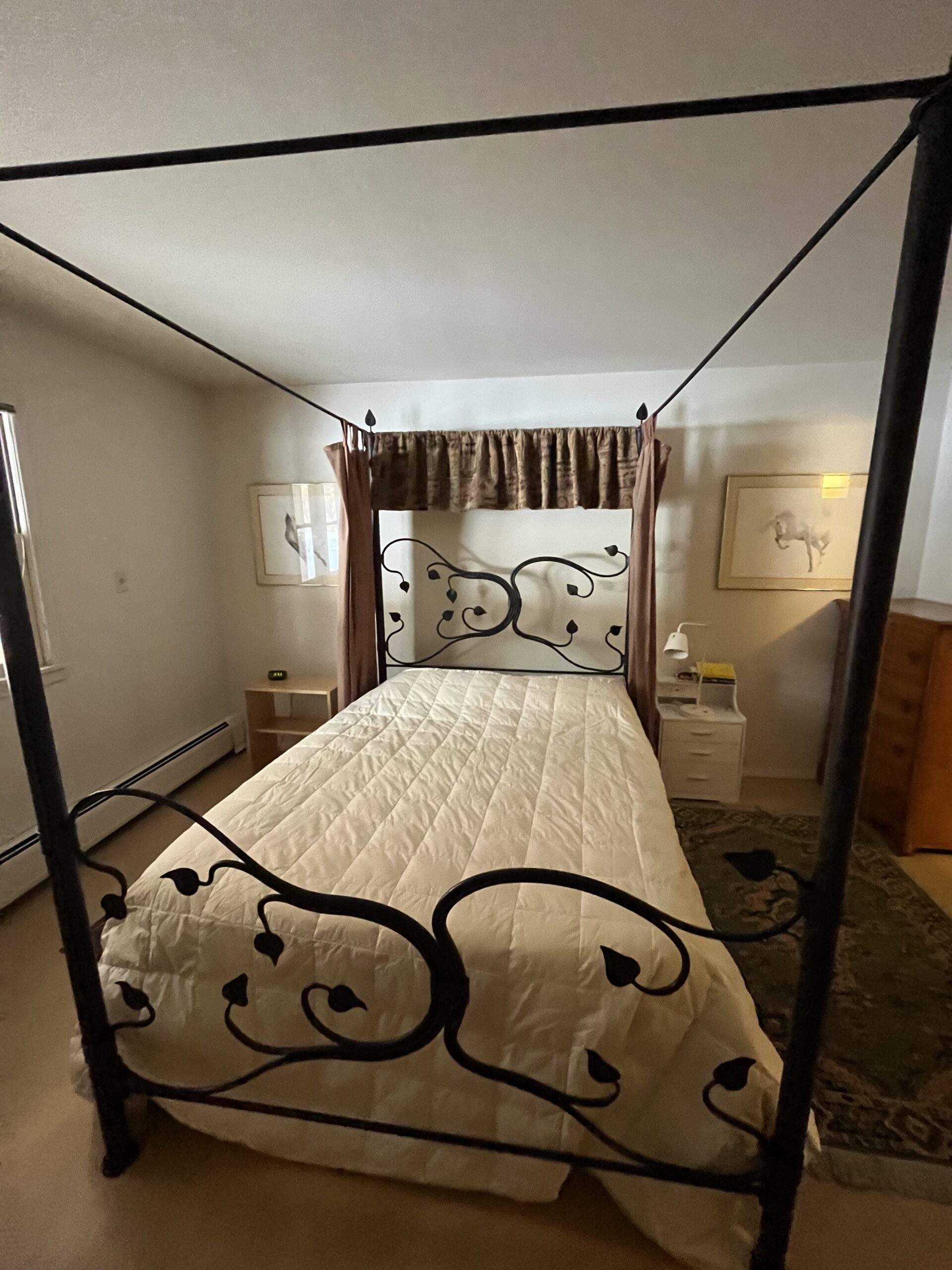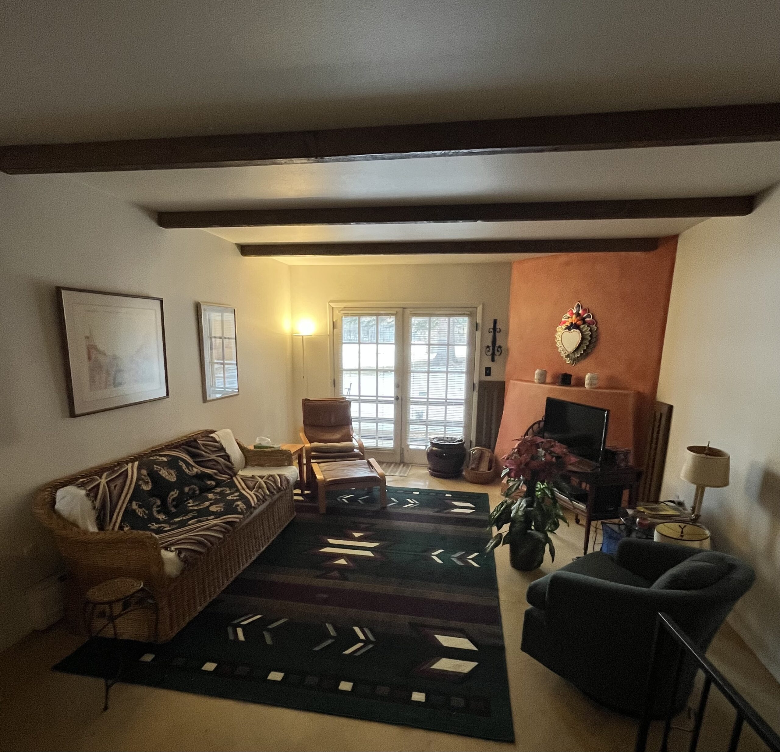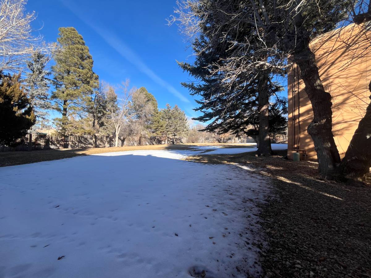 FURNISHED APARTMENT ground story condo conveniently located on Camino de la Placita near the public library and fire station. This two bedroom, two bath unit is being offered furnished and with a fully appointed kitchen. There is a laundry facility on site, adjacent to the condo. Primary bedroom has an ensuite bath. The second bedroom has a Murphy bed making this a versatile space that could also be used as an office. There is a fireplace in the living room that is decorative only. The sliding glass door off the living room opens to a small patio and an expansive yard with grass and mature cottonwood trees. There is also a locking storage space attached to the unit. All utilities are included. One small dog may be considered.