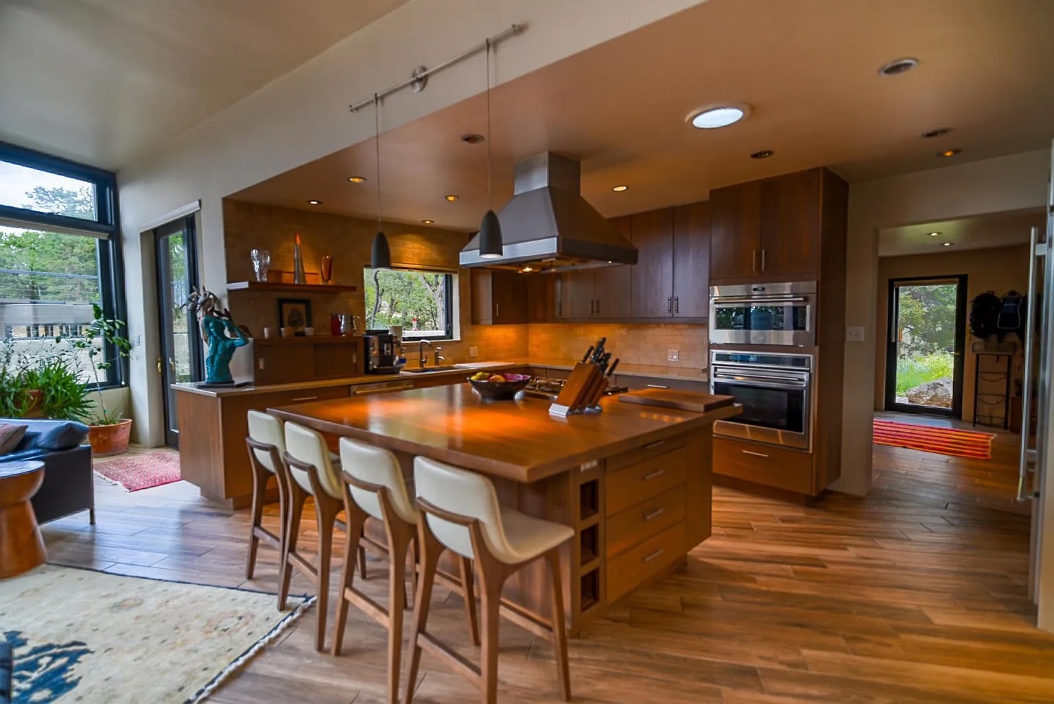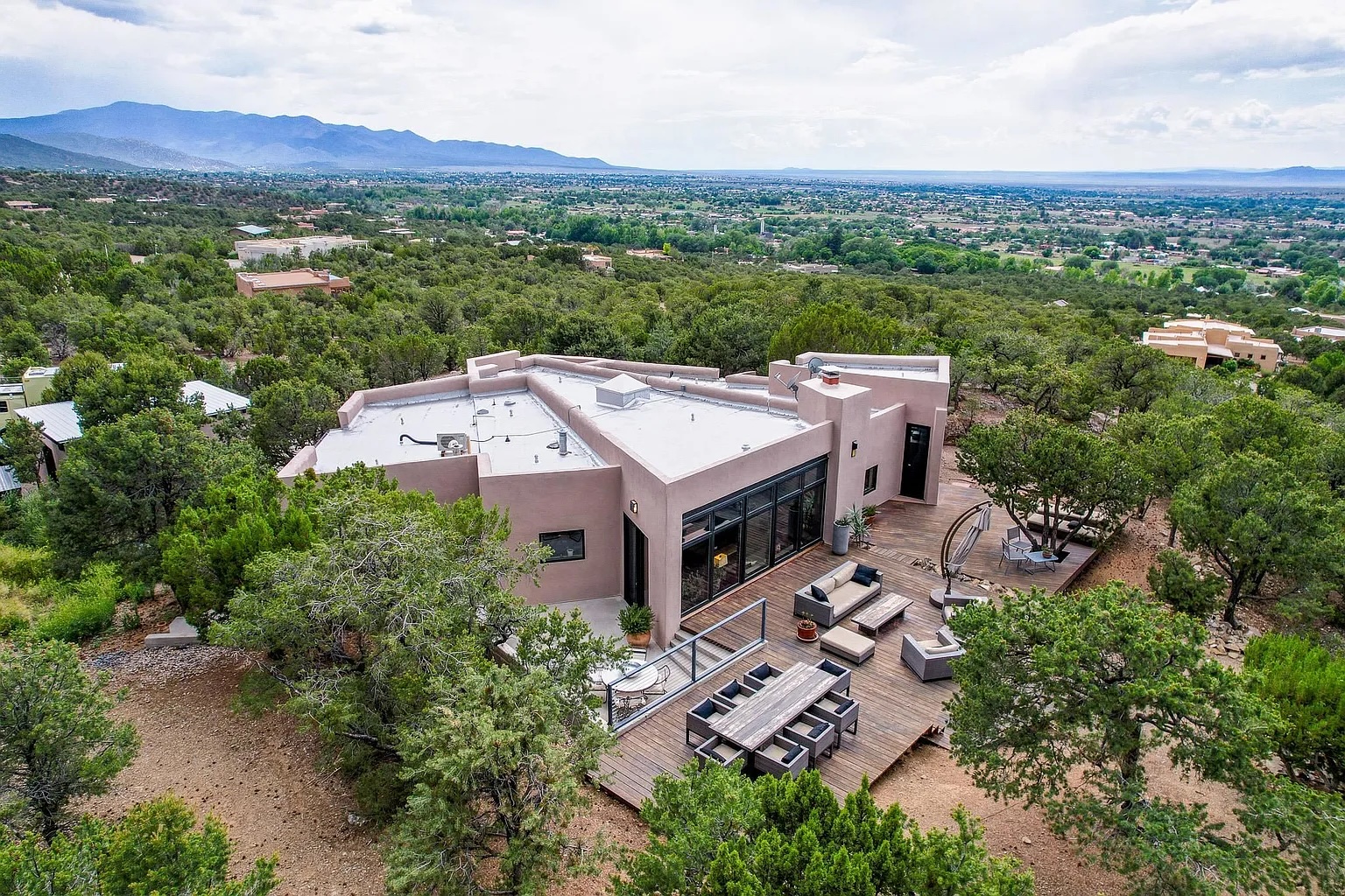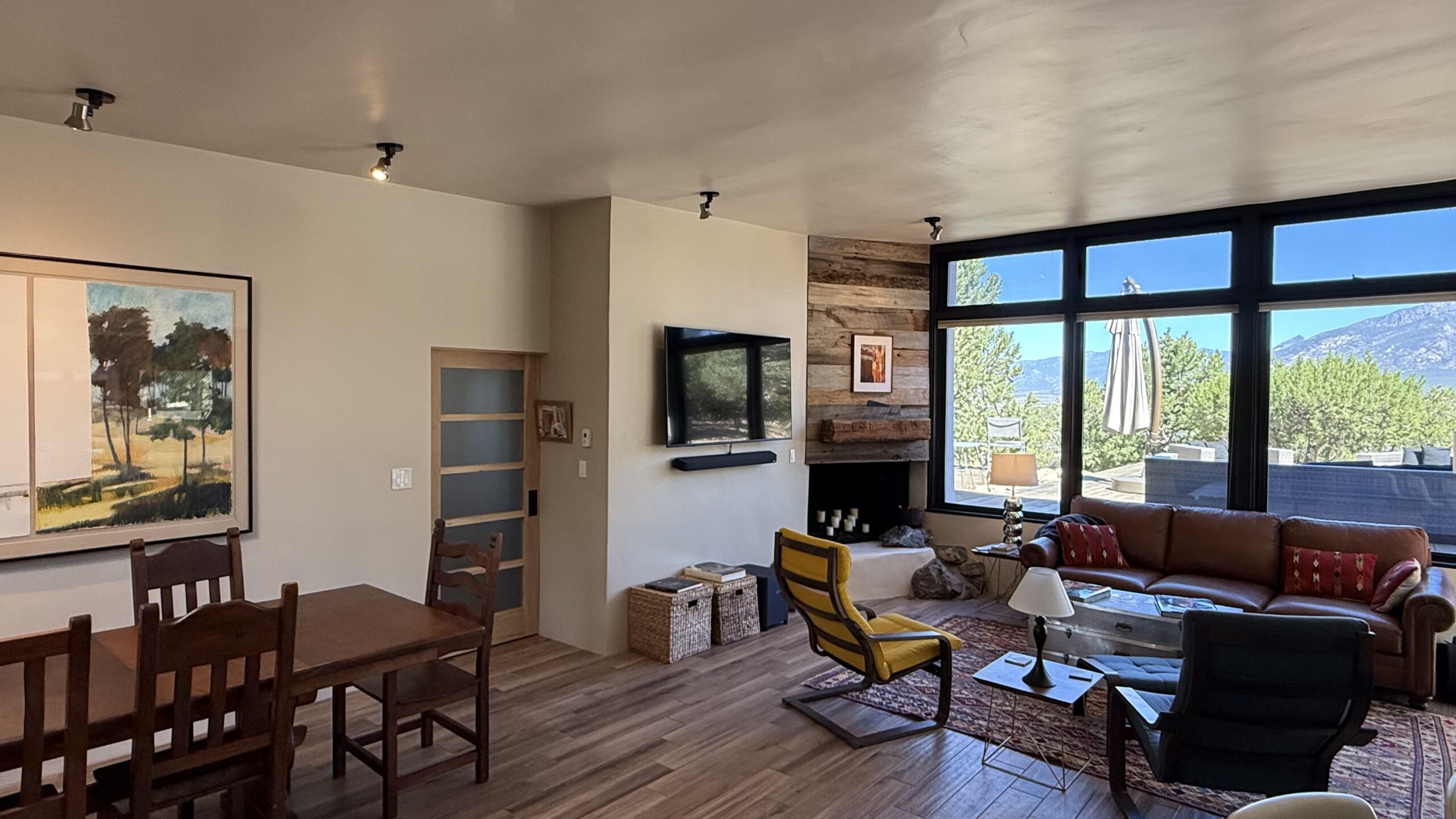 One of a kind contemporary, fully furnished mountain home perched on a private, 3 acre lot looking over the Taos valley, Taos Mountain and bordering Carson National Forest all while being a short trip into historic downtown. Highly desirable Canon Foothills location, nestled among the trees and the rock outcroppings, this home is sited perfectly, taking in the vast mountain and valley views, sunrise to sunset. Filled with natural light and remodeled to perfection. Great room concept. Open cook's kitchen with Quartz counter tops, dining counter, custom cabinets, SubZero and Wolf appliances. 2 bedrooms, 2 beautiful baths, plus office. Dramatic fireplace. Huge picture windows frame the expansive decks and the mountain views. Lovingly and professionally maintained. Exceptionally well-appointed, high-end furniture. Enjoy outdoor living on its 1700 sq ft deck with dining table for eight, couch, lounge chairs, and two sets of chaise lounges. Energy efficient. Natural gas. Hunter Douglas blinds throughout. New Stucco. Newer roof. New septic. Gated driveway. Abundant wildlife. Over 1700 sq ft of outdoor decking, with the hot tub deck overlooking all of Taos valley, plus a large patio. Enjoy the proximity to historic downtown the Taos Ski Valley and all that northern NM has to offer. This home and property are truly one of a kind.