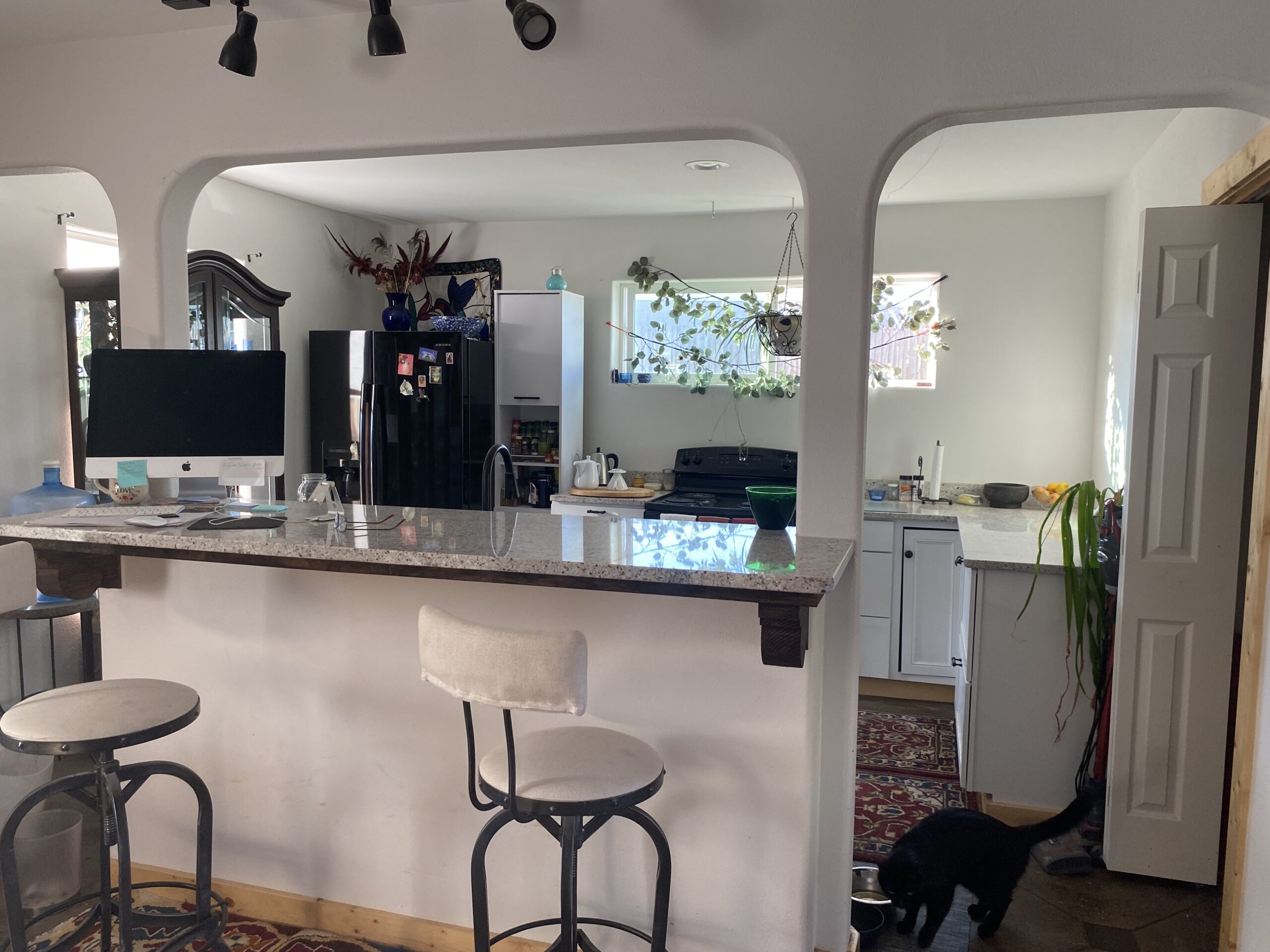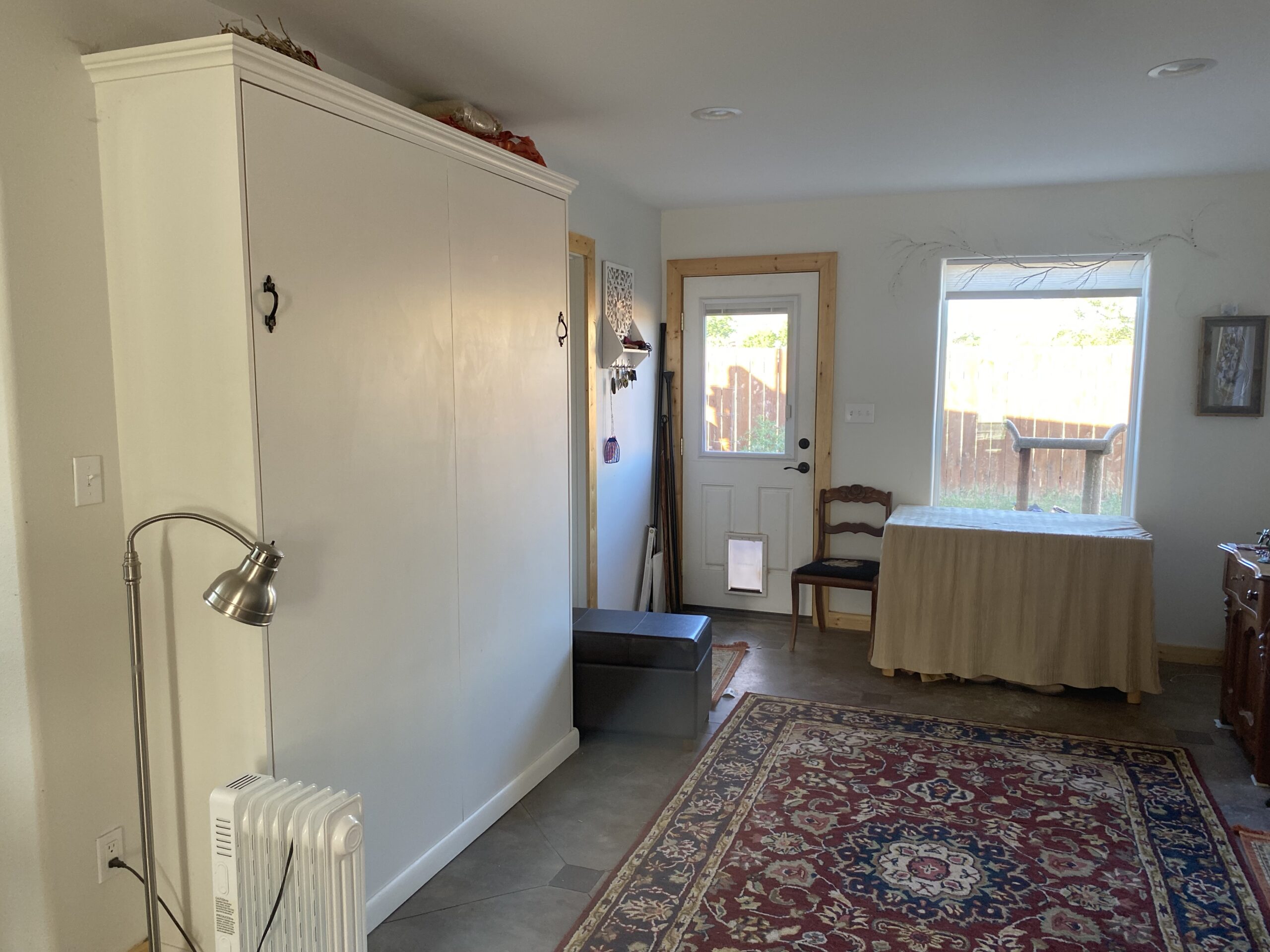 Semi-furnished with large full kitchen, and bathroom with soaking tub/shower and washer/dryer. Shared living/bedroom space with Murphy bed. Casita is in an enclosed backyard space of the main home and is very private and in close proximity to the hospital being approximately 7 minutes away.