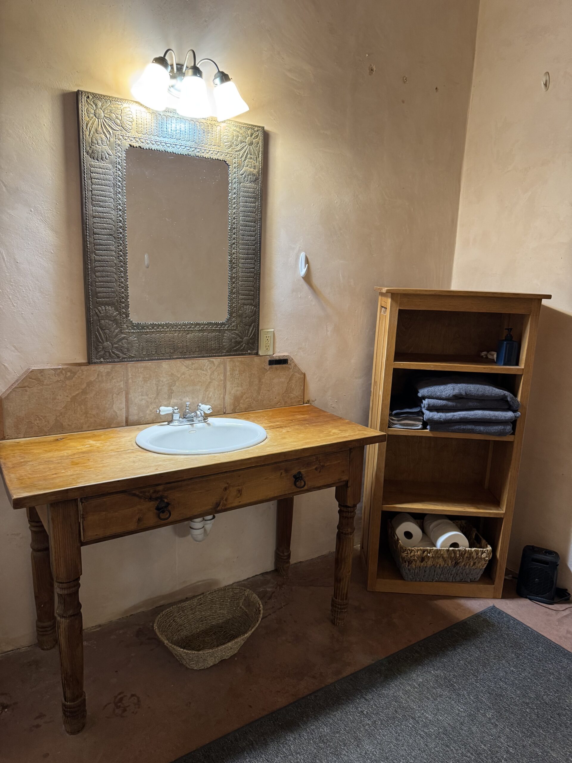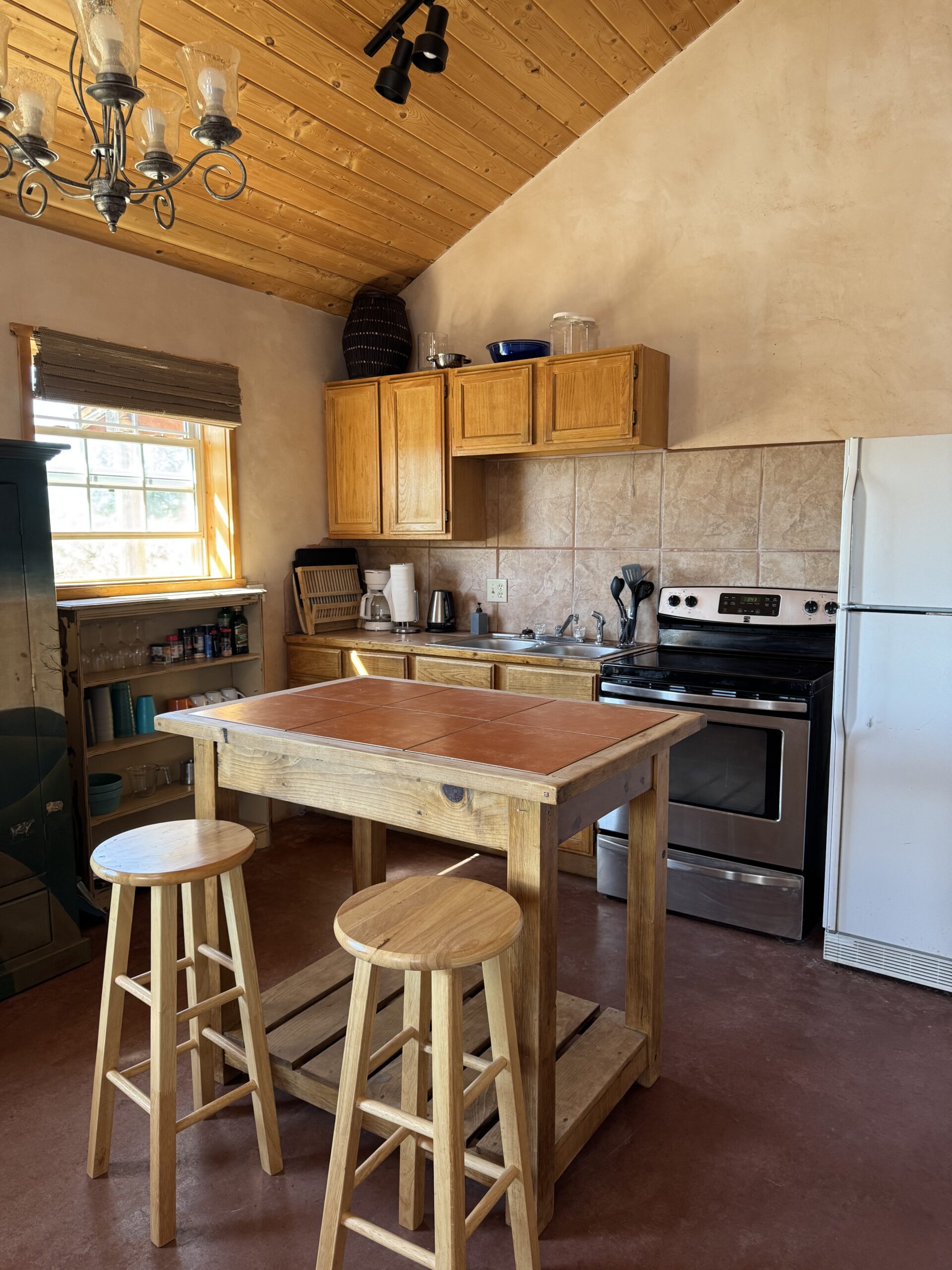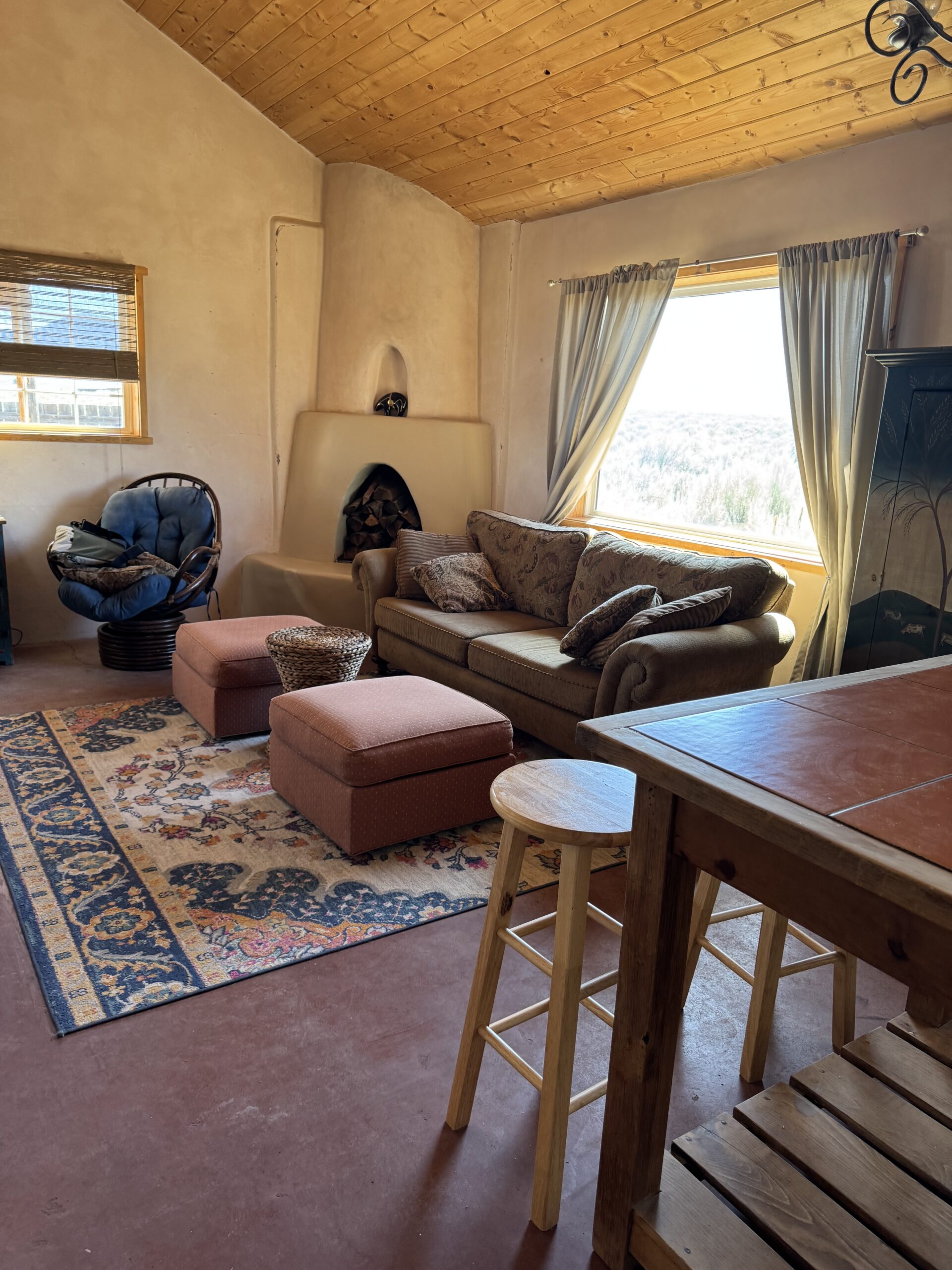 Located in the beautiful Tune Drive neighborhood where everyone has at least 2 1/2 acres! The house has an open floor plan with 18 foot ceilings. It is two bedrooms with a huge bathroom…with even a chandelier. It has 360° views! You can watch the sunrise and the sunset. There are lots of walking and biking trails and you even can see 1 trillion stars at night! perfect for two people! All utilities are included in the price, water, trash, Wi-Fi, propane, electric! Only eight minutes from town and all the privacy you could ever dream of!