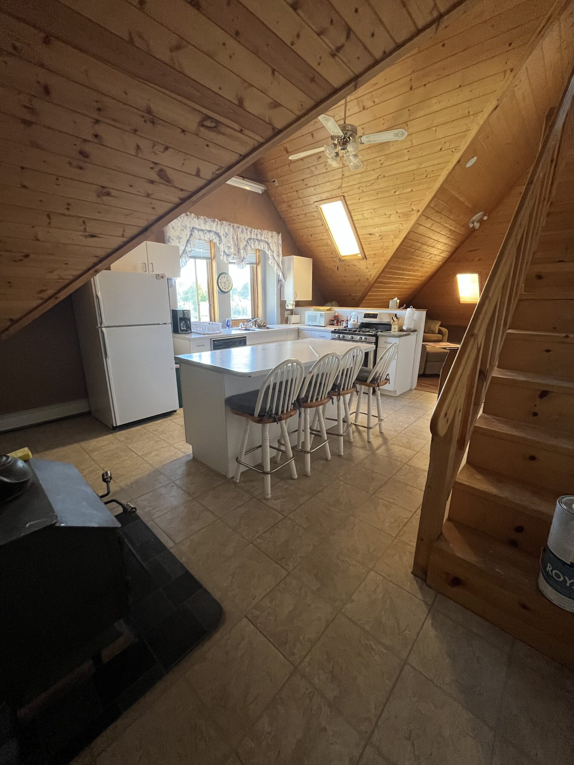 Fully furnished second-story apartment with 1 bedroom and 1 full bathroom.